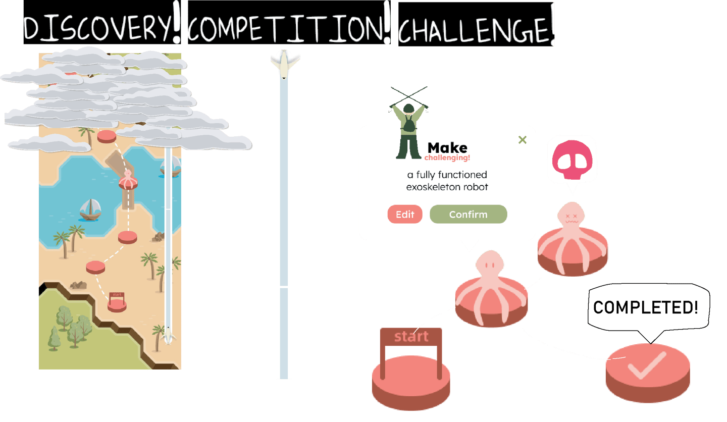 The figma-based UI design added a playful, competitive and learning element beyond goal-setting. Testing the previous iterations showcased the mundane unsuprising trajectory of development revealed boredom, disengaged and confused mindset. The playful elements probes engagement, holds focus and provides opportunity for change.