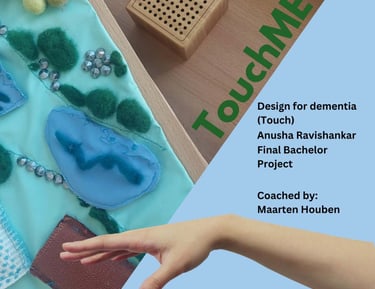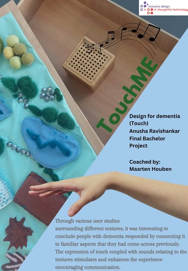 People with dementia often experience apathy, withdrawal, and loss of speech, which reduces opportunities for social contact and self-expression. Touch is one of the senses that remains relatively intact and can support reminiscence, comfort, and non-verbal communication when verbal abilities decline. TouchME explores how a touch-based medium can support social cohesion, offer alternative ways of “speaking,” and help counter the stigma that reduces people with dementia to their symptoms.